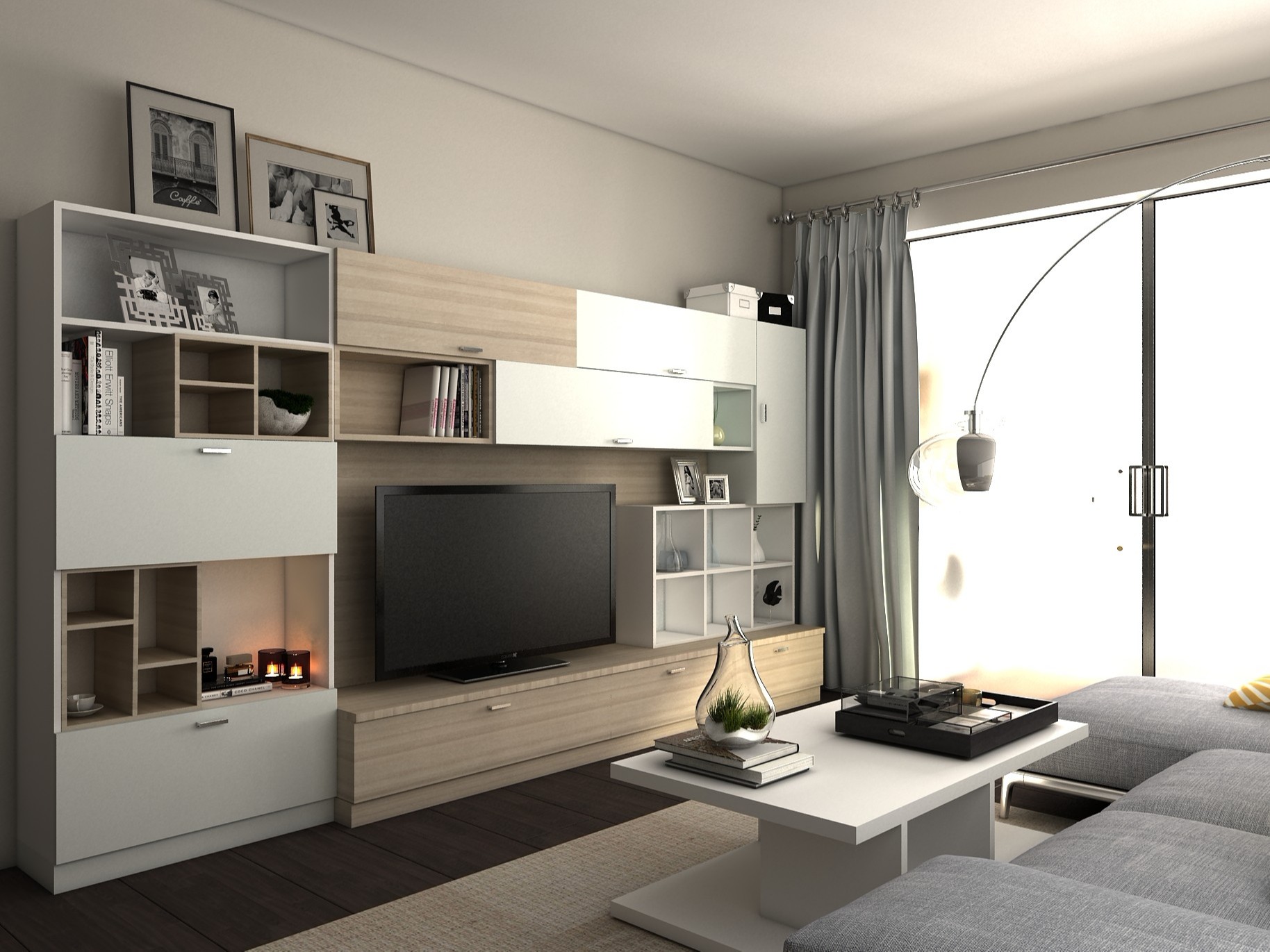 全鋁電視柜-02(風格:現代;顏色:橡木暖白)